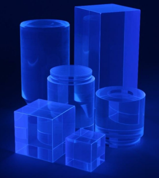 Compared with other scintillator materials, it is cheap and can be manufactured in very large volumes. Also, It can be made into different shapes, such as: plates, sheets, blocks, rods, columns, rings, etc.